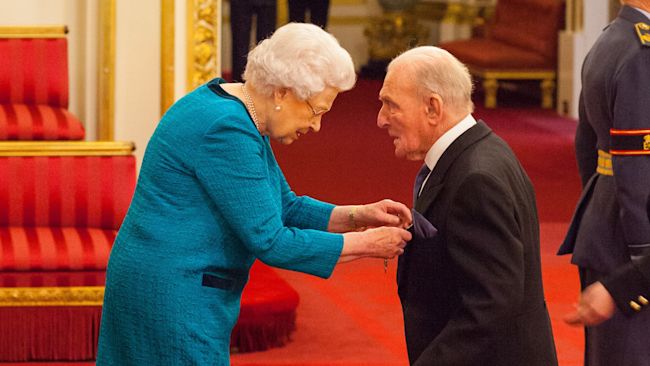 Squadron Leader George Leonard Johnny Johnson From Bristol Is Made An Mbe Member Of The Order Of The British Empire By Queen Elizabeth Ii At Buckingham Palace Stock Photo Alamy