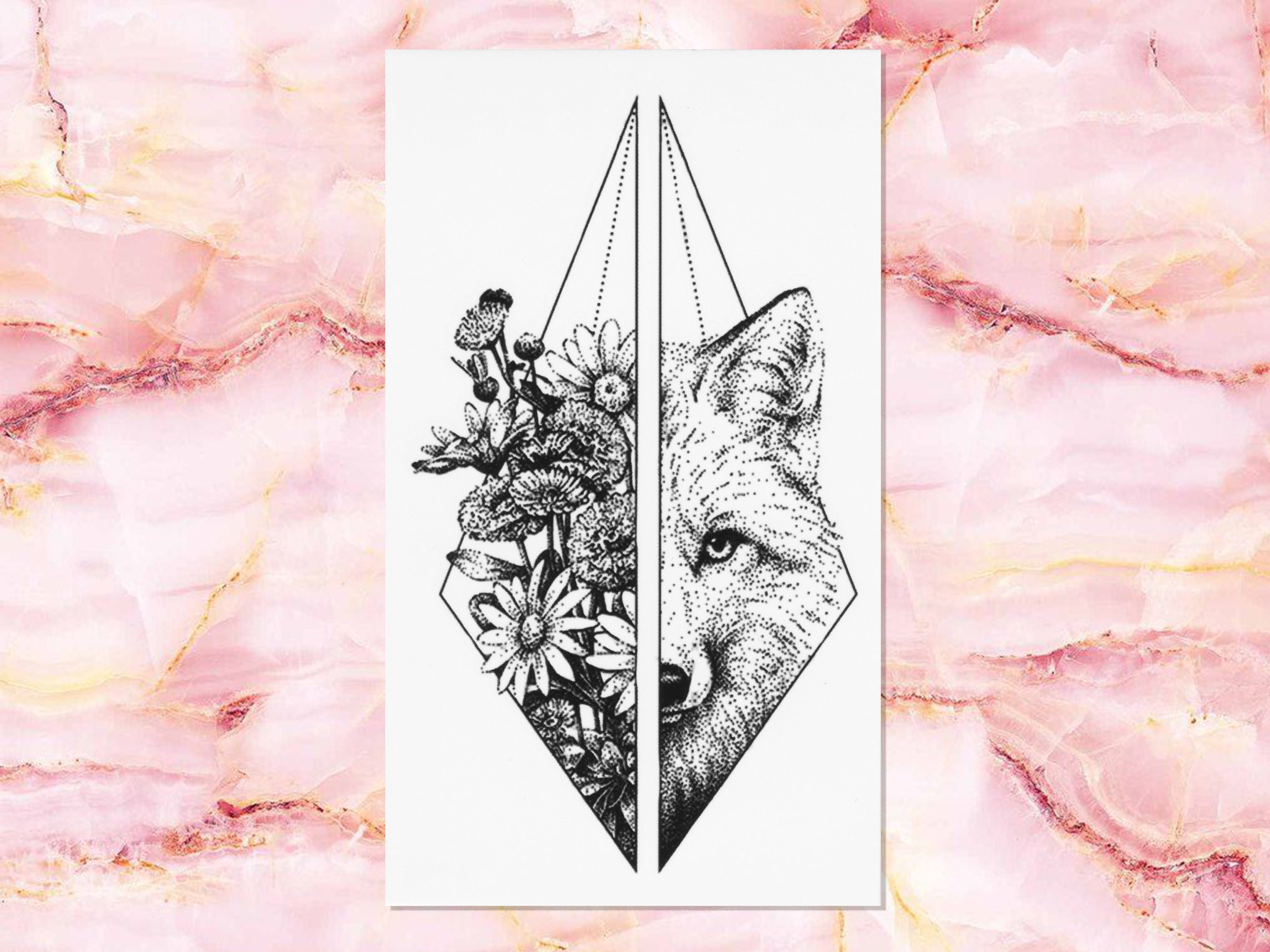Fox Temporary Tattoo Floral Temporary Tattoo Fake Tattoo Etsy Australia